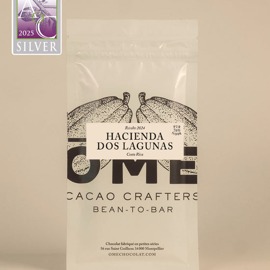 Ce chocolat noir bean-to-bar est fait à partir de 2 ingrédients seulement : fèves de cacao de la Hacienda Dos Lagunas au Costa Rica et du sucre de canne bio non raffiné du Brésil, rien d'autre.